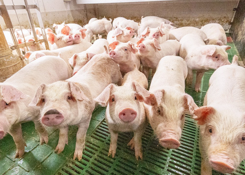 離乳舎は、分娩舎で約3〜4週間母豚のもとで育った子豚たちが、親離れをして他の子豚たちだけで成長していくための施設です。